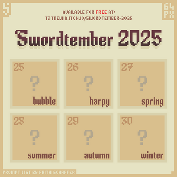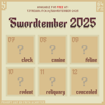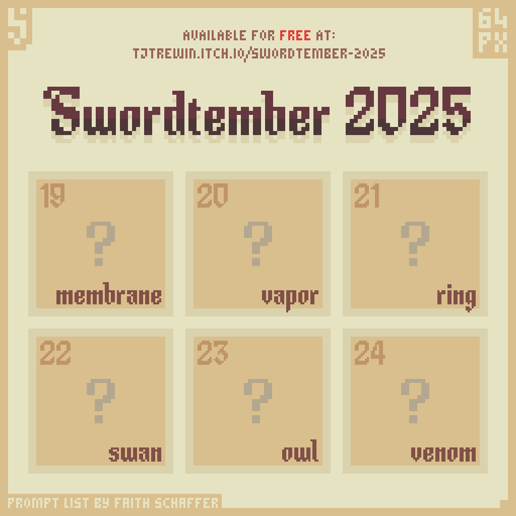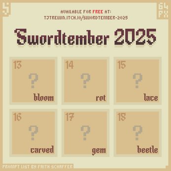 I'm making this pack of pixel art sword icons during September 2025 during the annual art challenge: Swordtember! I'm following Faith Schauffer's prompt list - it's great fun!